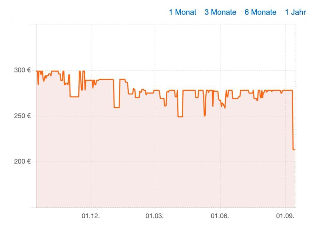 W ciągu ostatnich kilku miesięcy z powodu promocji pojawiły się wartości odstające, ale cena pozostała względnie stała. Zaledwie kilka dni temu, gdy cena została oficjalnie obniżona przez Apple do 229 euro, zegarek odnotował spadek ceny. Nowy zegarek kosztuje mniej, więc używane modele są również tańsze.