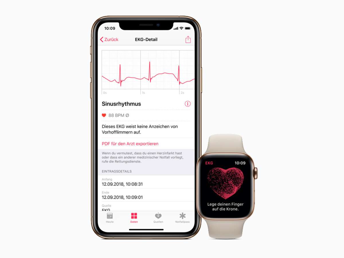 Ale nie tylko w Niemczech użytkownicy Apple mogą korzystać z nowej funkcji, funkcja jest również dostępna w dużej części Europy, a więc także w Austrii i Szwajcarii. Wprowadzenie funkcji EKG zostało opóźnione, ponieważ Apple musiało poczekać na zatwierdzenie w Europie, które zaklasyfikuje Apple Watch jako urządzenie medyczne.
