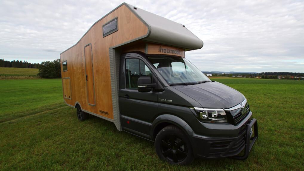 Nie z powodu sterylnego kampera: zespół ojciec-syn z południowych Niemiec chce wystartować drewnianą przyczepą na bazie MAN TGE. Jeśli spojrzysz na przytulne wnętrze, lubisz wierzyć, że ten plan zadziała.