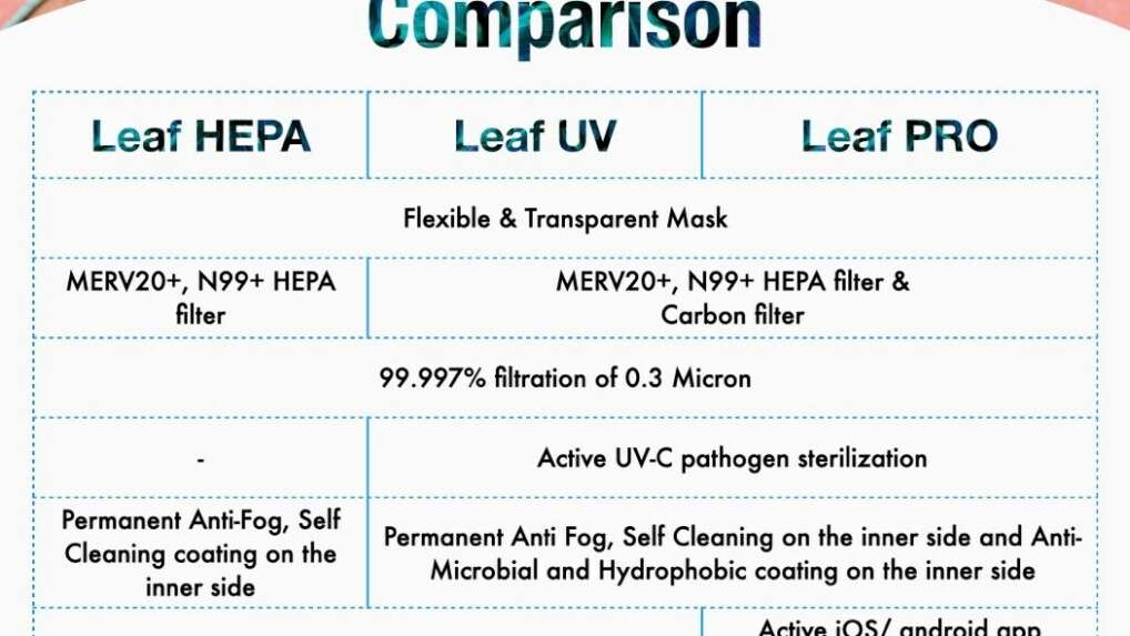 Według producenta maska LEAF jest pierwszą przezroczystą maską zatwierdzoną przez FDA, spełniającą normę N99. Oznacza to, że ta maska może filtrować 99 procent cząstek unoszących się w powietrzu, które są większe niż 0,3 µm. Dotyczy to również wirusa koronowego. Dla porównania: maska N95 w przybliżeniu odpowiada europejskiej masce oddechowej FFP2, która jest zalecana dla personelu medycznego. Wydajność filtra maski LEAF przewyższa to. LEAF oferuje między innymi następujące zalety w porównaniu z konwencjonalnymi maskami: