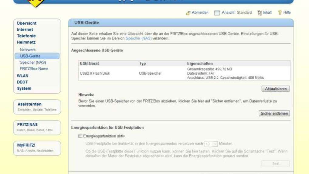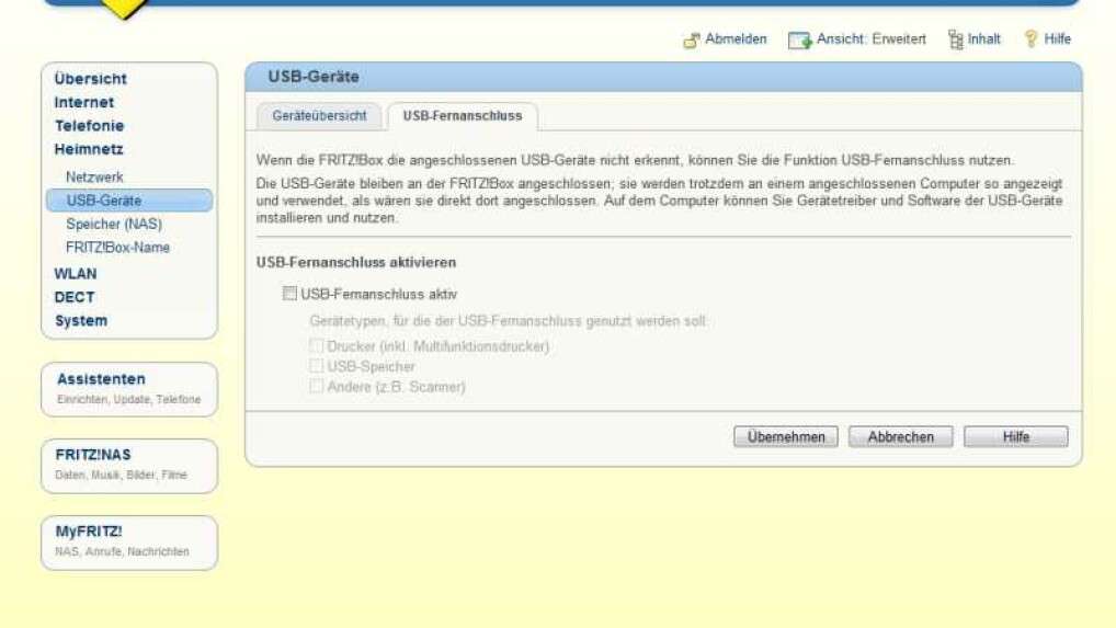 Najpierw należy dezaktywować zdalne połączenie USB. Dostęp znajduje się w „Sieć domowa” i „Urządzenia USB”. Jednak dezaktywacja nie działa w widoku standardowym. (Zdj.: netzwelt) [Pokaż na jednej stronie | Pokaż jako historię] Zdjęcie 2/10
