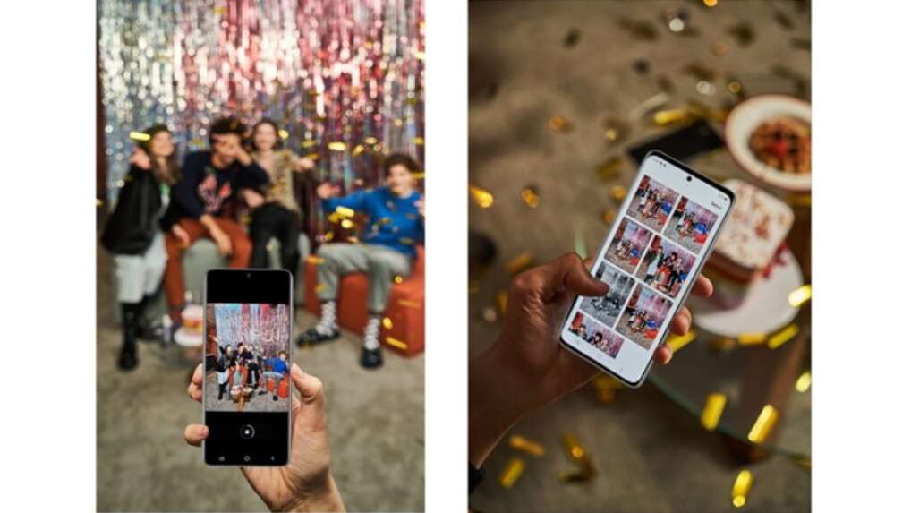 Samsung wprowadził tryb aparatu „Single Take” w Galaxy S20. Jednym kliknięciem możesz nagrać motyw za pomocą różnych kamer telefonu komórkowego, a opcjonalnie również jako wideo. W ulepszonej wersji dodano dodatkowe formaty. (Źródło: Samsung) [Wyświetl na jednej stronie | Pokaż jako historię] Zdjęcie 1/6