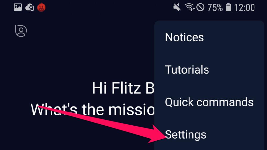 W aplikacji Bixby otwórz menu nad trzema kropkami w rogu. (Źródło: Scrrenshot) [Zobacz na jednej stronie | Pokaż jako historię] Zdjęcie 1/4