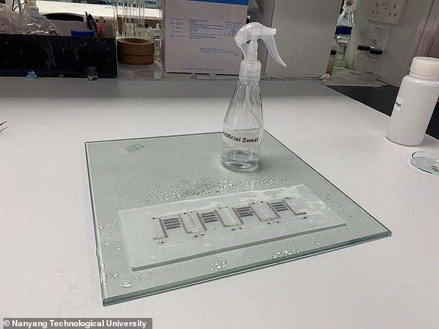 Naukowcy najpierw zademonstrowali potencjał urządzenia, rozpylając sztuczny ludzki pot (jak pokazano na zdjęciu) i odkryli, że może ono generować napięcie 3,57V.
